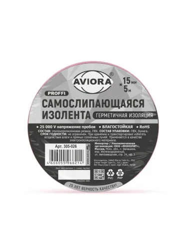 | Наименование | Изолента самослипающаяся 15x0.8мм 5м влагостойкая AVIORA в Химках Московской области |