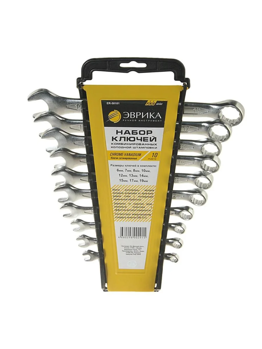 Набор ключей комбинированных 6-19мм 10 предметов в холдере CrV Pro ЭВРИКА ЭВРИКА er-50101 в Химках Московской области