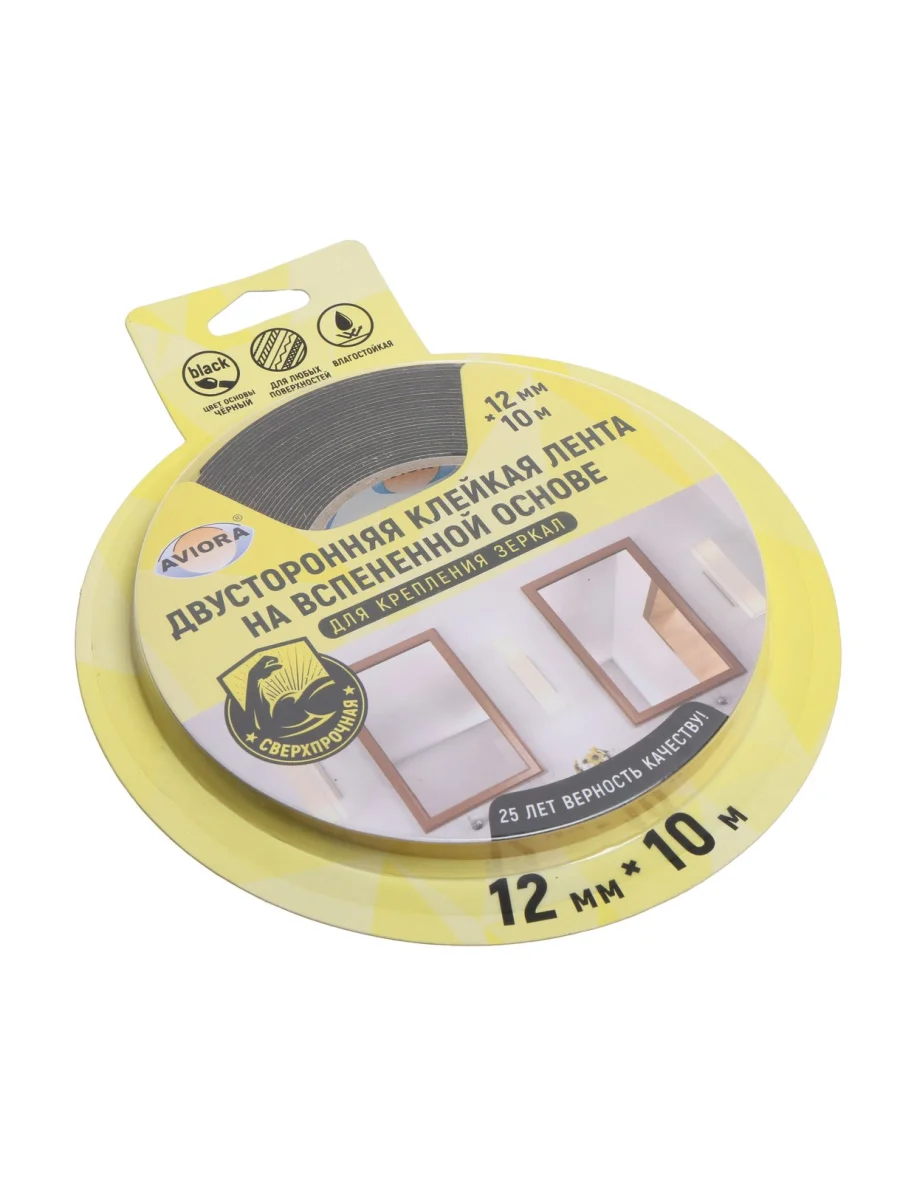 Скотч двусторонний 12x1.2мм 10м черный на вспененой основе для крепления зеркал AVIORA в Химках Московской области