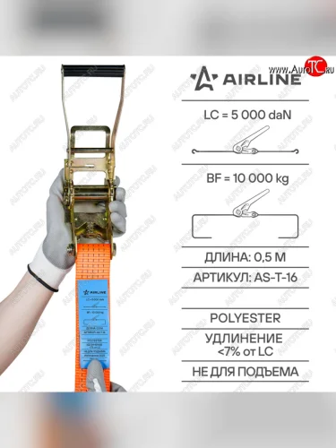 | Наименование | Стяжка крепления груза 10т 12м-50мм с храповиком AIRLINE AIRLINE as-t-16 в Химках Московской области |